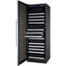 The VSWR177-1SL20 features 10 shelves that can hold up to 11 bottles each, 2 shelves that can hold up to 20 bottles each, and a top shelf that can hold up to 27 bottles for a maximum bottle capacity of 177 bottles. The maximum capacity can be reached with many different bottle sizes and is only affected when adding in larger Pinot or Champagne bottles.