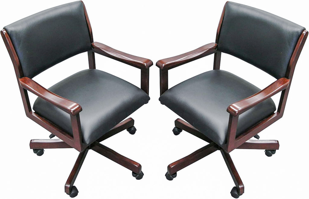 Enjoy comfort and versatility during every game night with this pair of rocker swivel game chairs. Designed for both style and performance, these chairs feature a warm chestnut wood finish paired with soft faux leather cushions for a classic and inviting look. Ideal for poker tables, game rooms, or dining spaces, they combine timeless craftsmanship with everyday comfort.