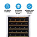 This NewAir Dual Zone Wine Fridge offers a staggering 160 bottle storage capacity, and with triple-pane insulated glass and dual cooling zones, it’s the perfect wine fridge for the serious wine collector. The stand-alone design fits snugly against the wall, and the craftsmen-inspired Beechwood shelves glide effortlessly for accessing your wine collection. Featuring an attractive stainless steel design, front-venting, and whisper-quiet compressor cooling, the NewAir Dual Zone Wine Fridge offers state-of-the-art storage for both red and white wines in a secure, lockable environment.